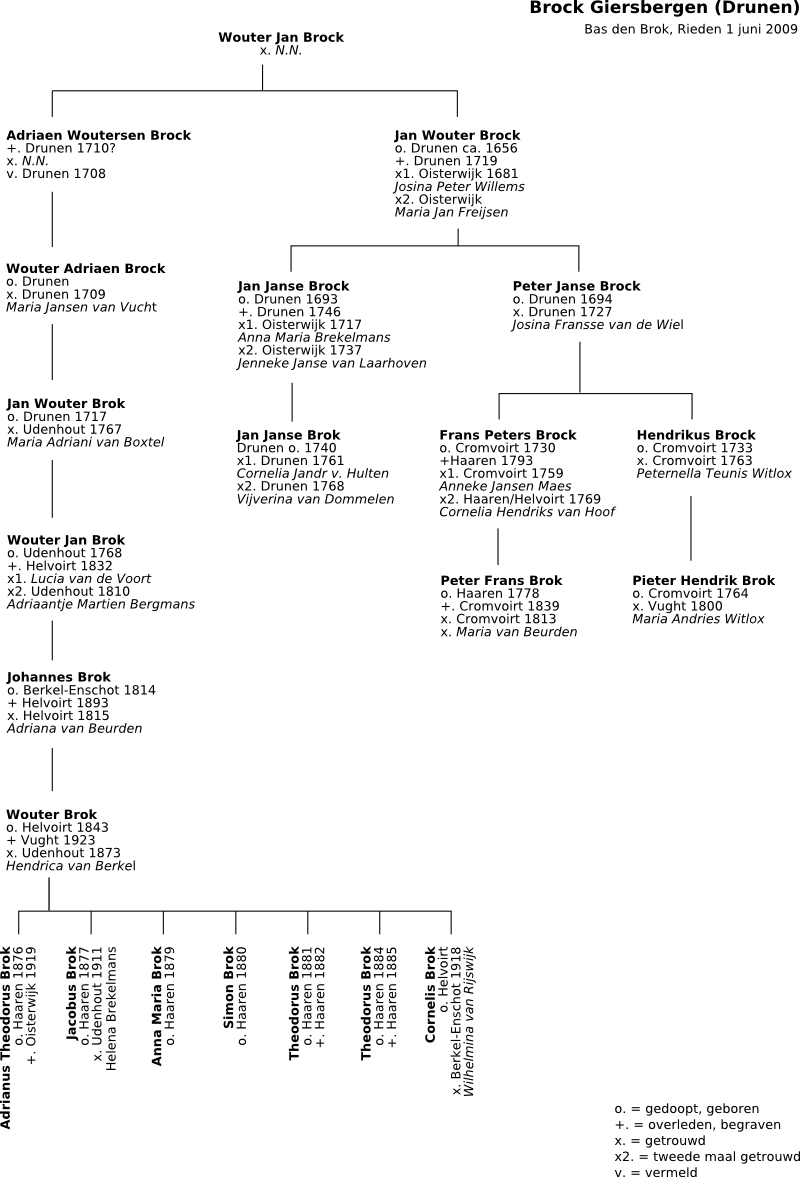 - Cornelis Wouter Brock, vermeld als dooptgetuige te Drunen 1697.