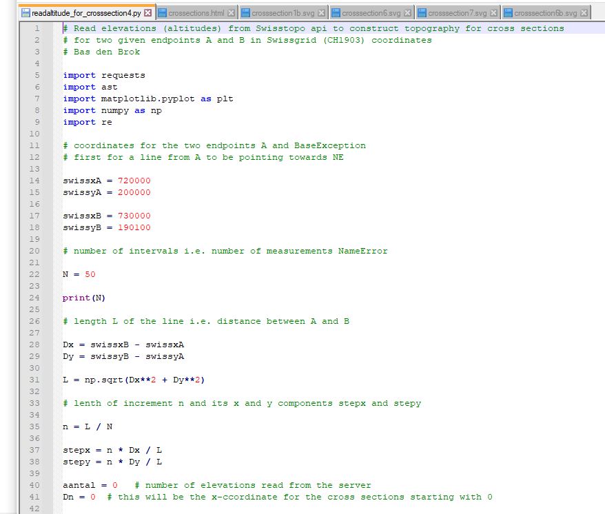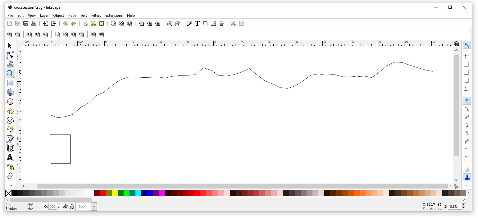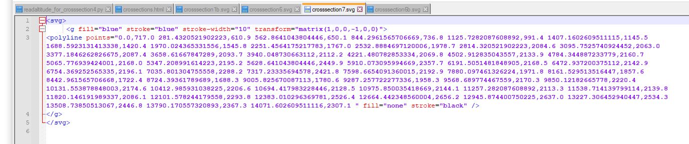 Here below is the code of the SVG-file with the polyline representing the topography between A and B.