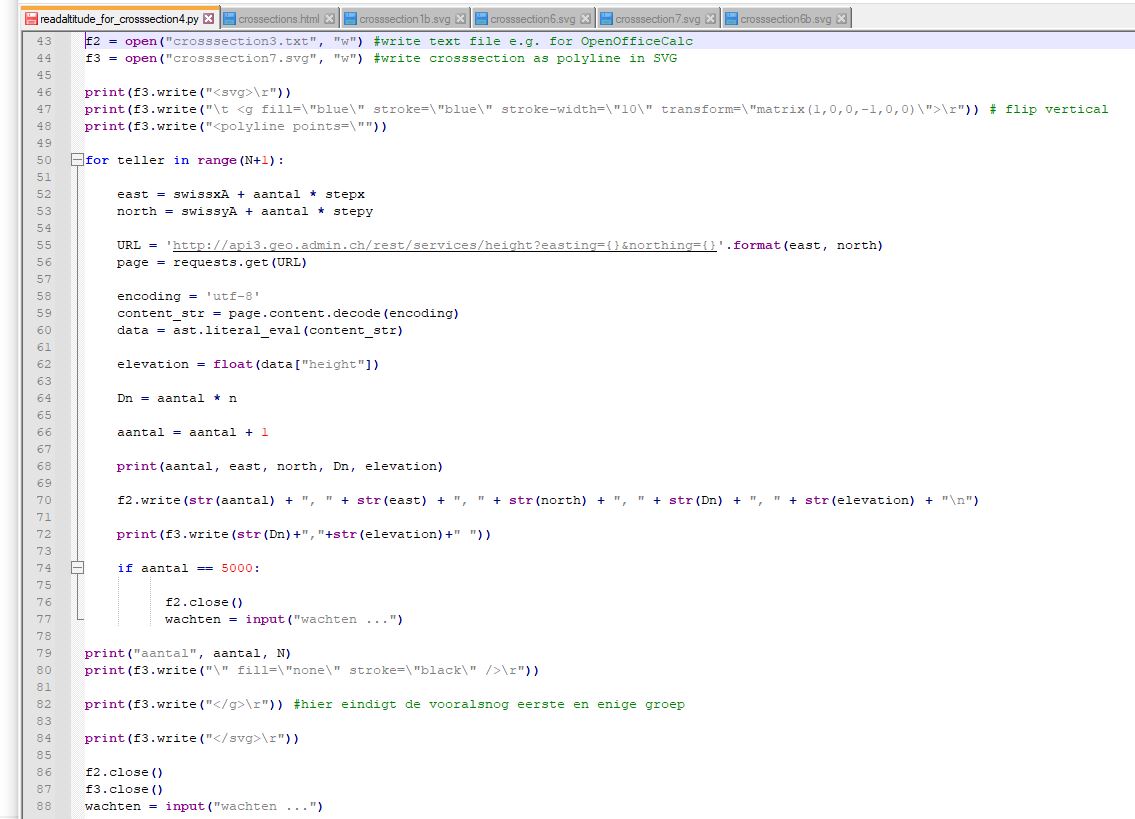 We want to read the elevations between two given points in Swissgrid CH1903 coordinates