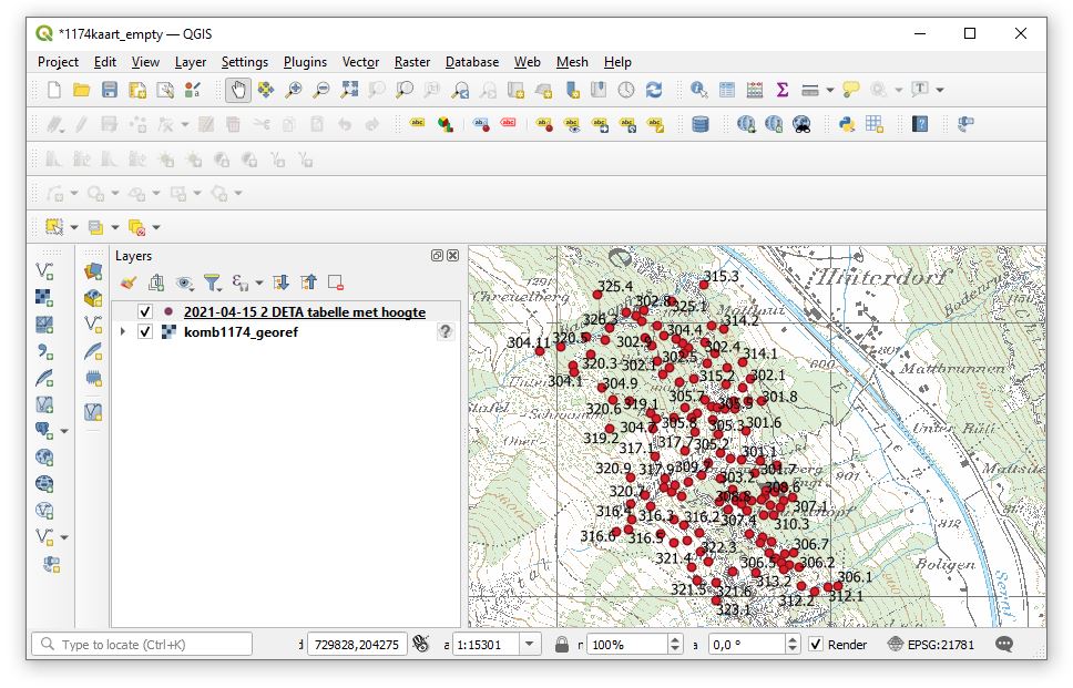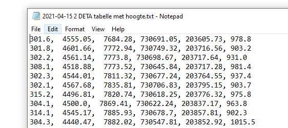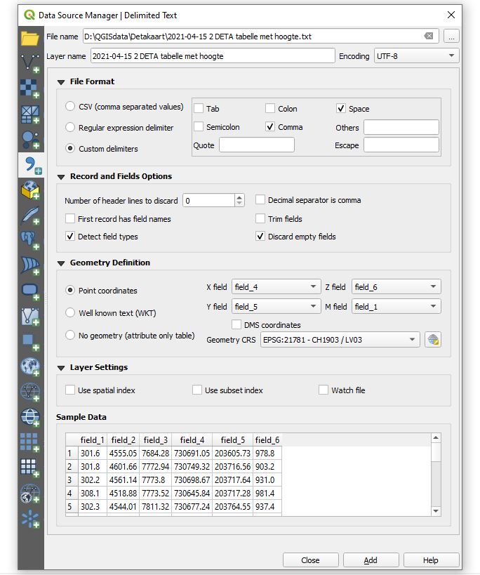 We import this text file with the elevations into QGIS prject with the