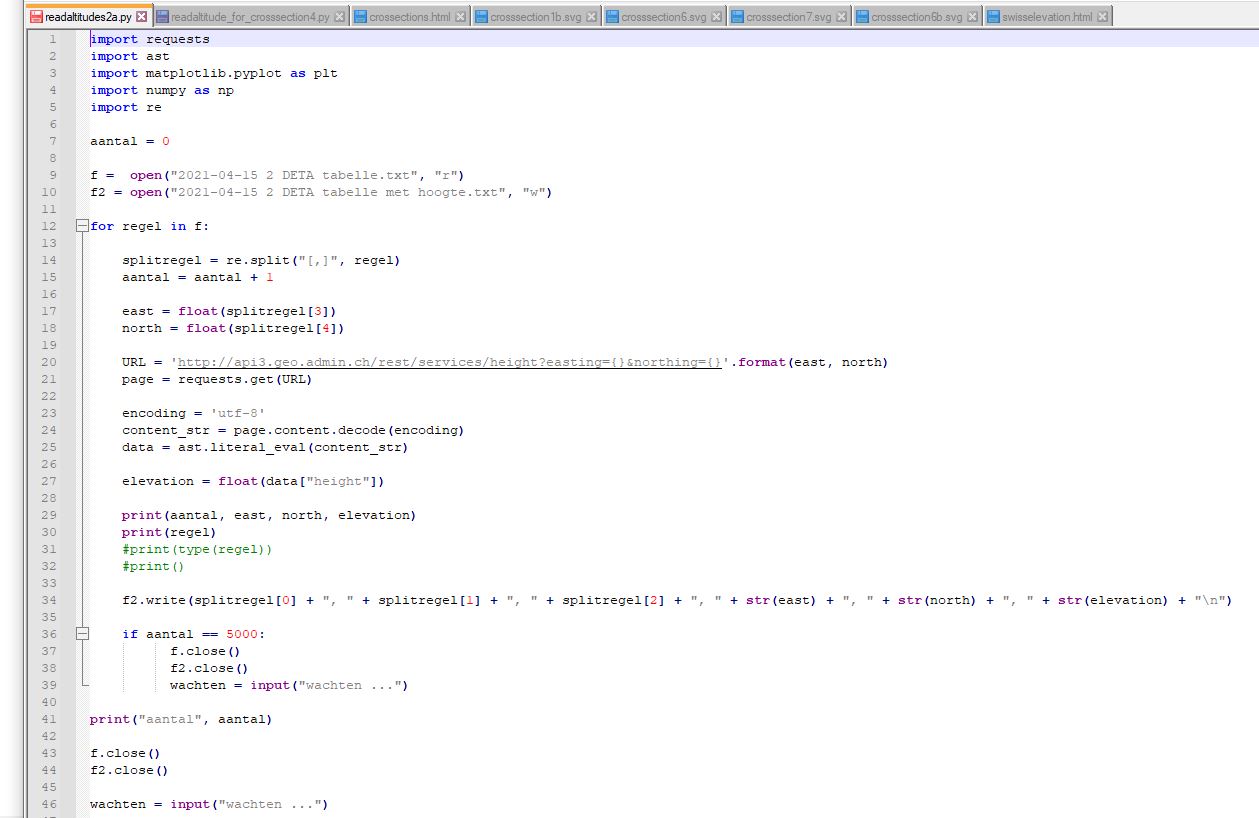 A text file is created with outcrop number, SVG-GUI coordinates, Swissgrid coordinates and the elevation