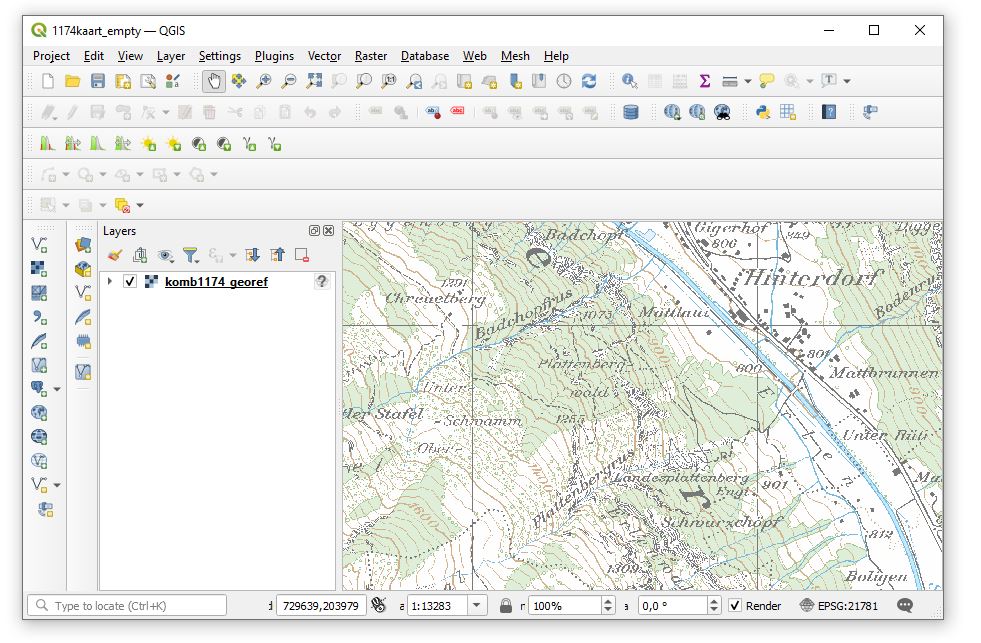 right corner you can see that the coordinate reference frame (CRS) is EPSG:21781
