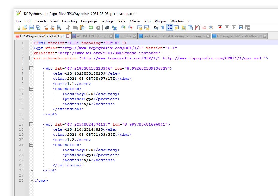 GPSwaypoints2021-03-4bb.gpx and print these to screen and write them to text file