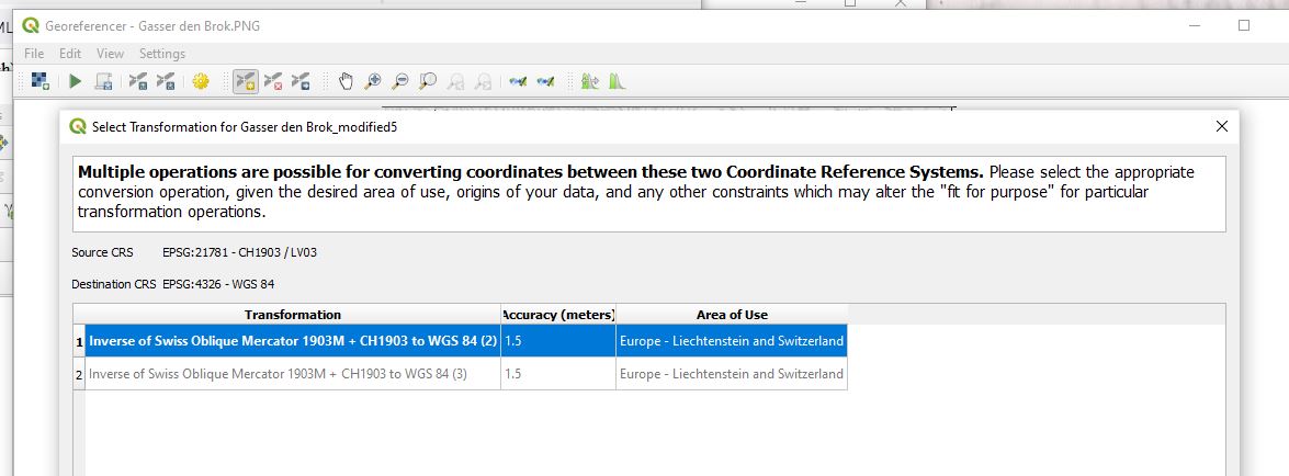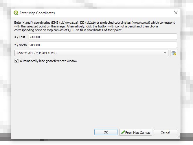 (manually entered) coordinates of the destination file, Swissgrid CH1903 coordinates in our case.