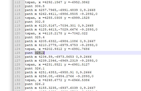 We want to read coordinates and numbers of outcrops on a geological map in SVG format and write them to a text file to import in QGIS.