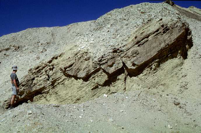 Brittle deformation of sedimentay layering. Sandstones from Nukhul Formation near Abu Zenima, Sinai, Egypt. Boris Kaus for scale.